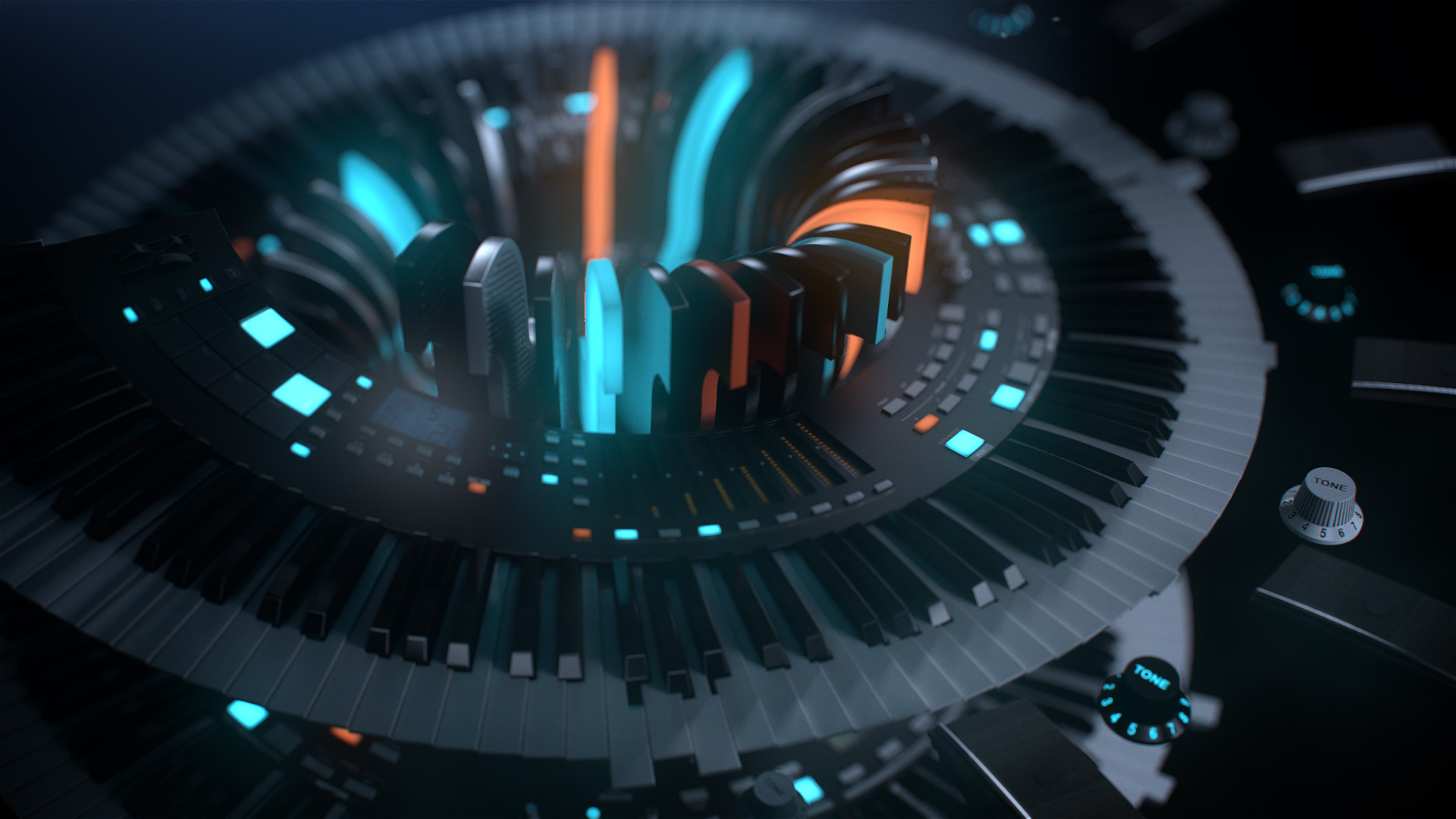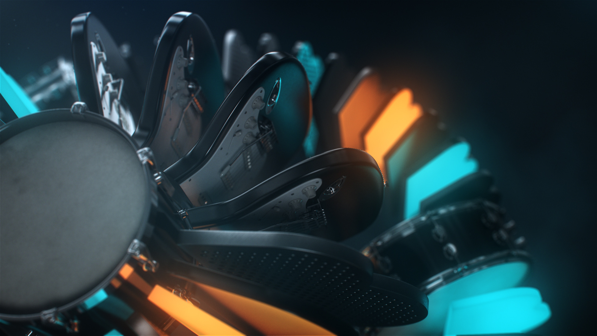 We had to model a set of 20+ music instruments, and electronic pieces in very high detail, unwrap their textures and slice these models in parts.