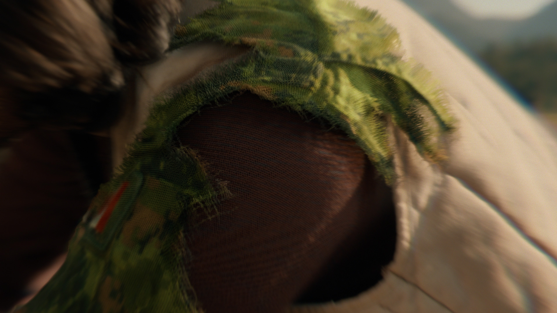 This visual effects project presents a dynamic transition of textiles, demonstrating the transformation from everyday casual clothes to camouflage gear. The detail-oriented work, brought to life with Houdini’s cloth and hair simulations, embraces a macro perspective, delving into the intricacies of individual threads and fabric structures.